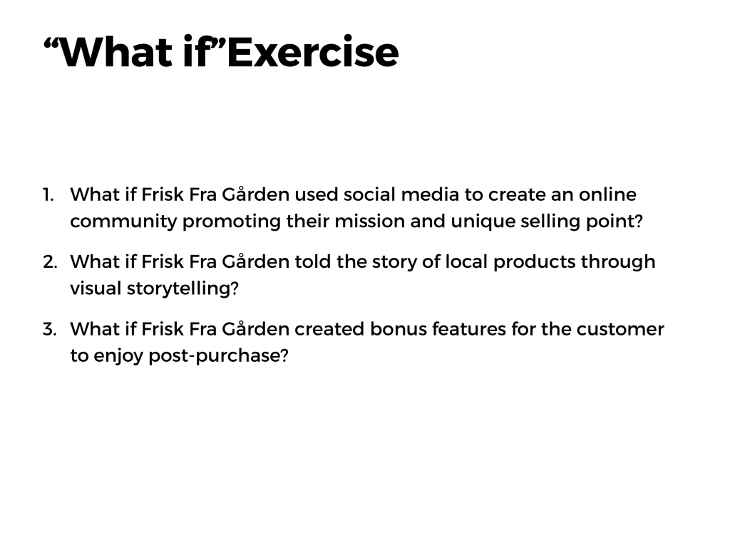 This project refined my ability to blend research-driven insights with strategic communication, ensuring that sustainability is not only an ethical choice but also a compelling reason for brand loyalty. The result was a framework that empowered Frisk Fra Gården to strengthen customer relationships, enhance brand visibility, and position itself as a leader in the organic delivery market.