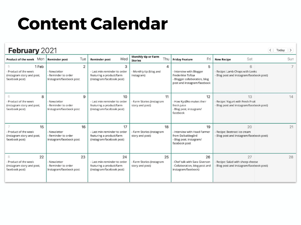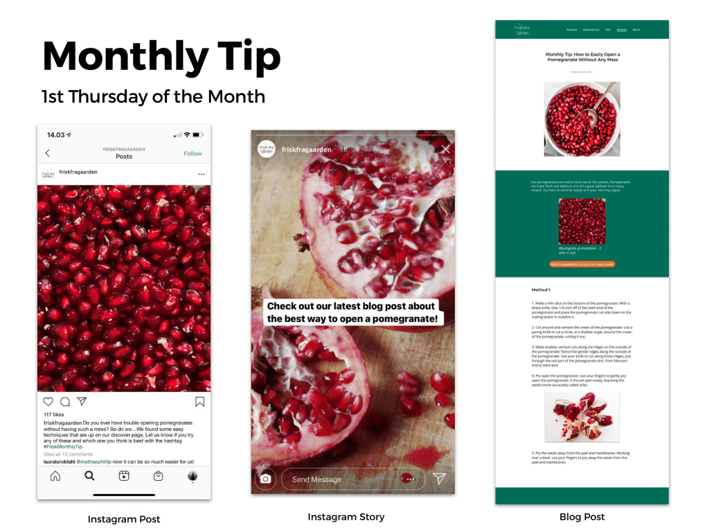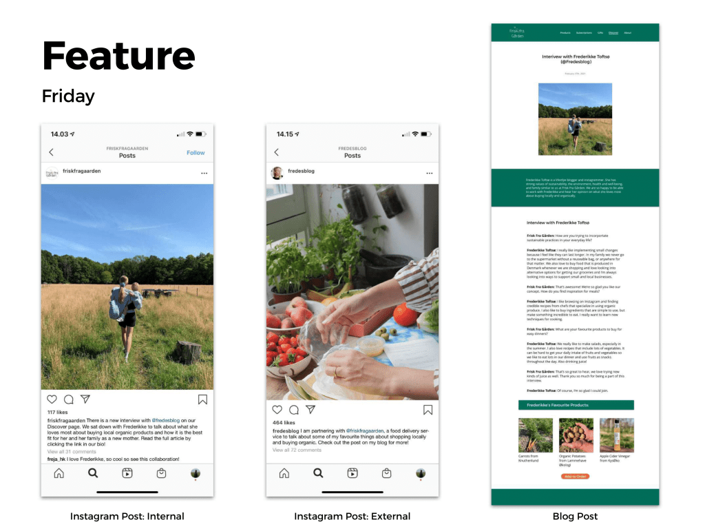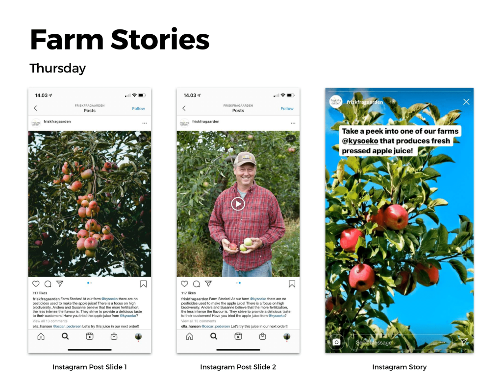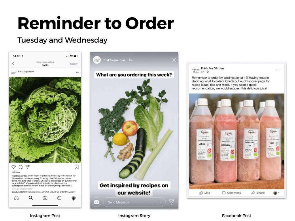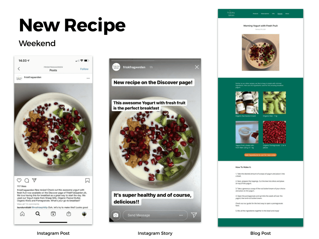 To address these findings, a content-driven communication strategy was developed. This included a content calendar focused on organic, transparent, and persuasive storytelling, ensuring that Frisk Fra Gården’s values were effectively conveyed across digital platforms. Personalized engagement strategies, such as tailored email campaigns and social media initiatives, were also introduced to foster stronger relationships with customers and encourage repeat purchases.