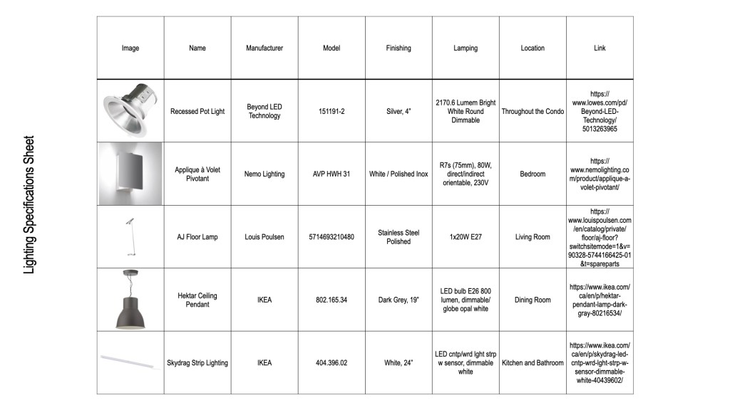 The integration of lighting plans, Moodboards, Design Briefs, and FFE schedules demonstrates not only technical proficiency but also a holistic approach to interior decorating that includes both aesthetic and functional considerations.